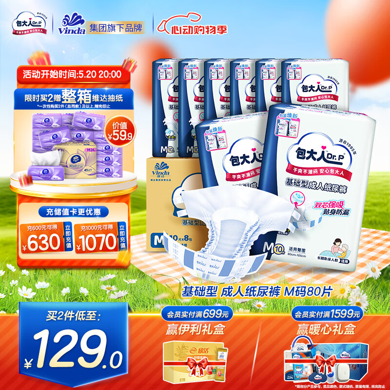 包大人(Dr.P)基础型成人纸尿裤M80片(腰围:70cm-110cm)老年人产妇尿不湿价格:178.40元!