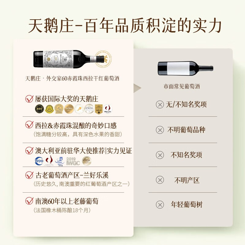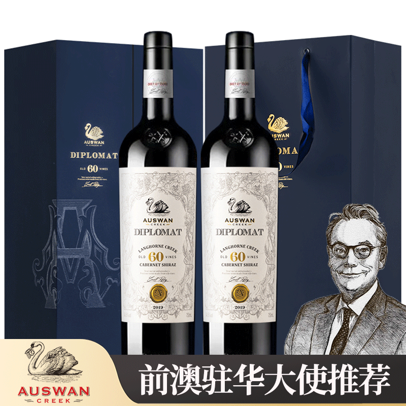天鹅庄(AUSWAN)澳大利亚进口红酒 外交家干红葡萄酒年货礼品双支礼盒 兰好乐溪外交家60混酿 750ML双支价格:2198.00元!