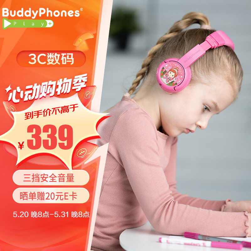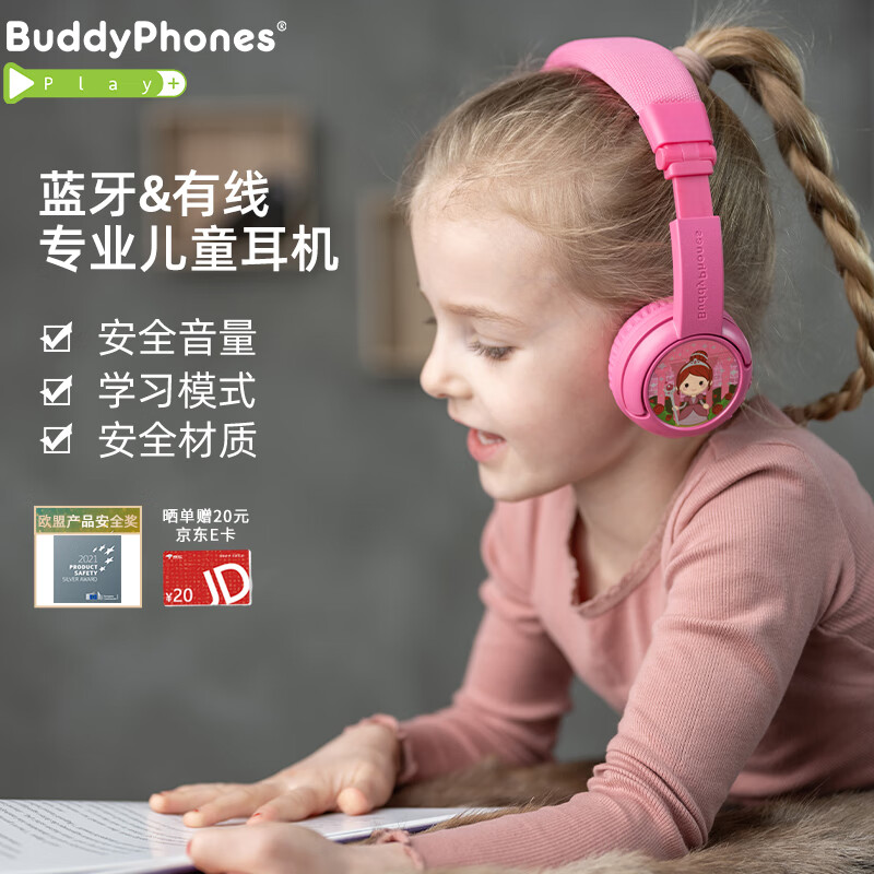 onanoff BuddyPhones儿童耳机头戴式无线蓝牙 网课学生学习耳机苹果安卓手机通用play+公主粉价格:379.00元!
