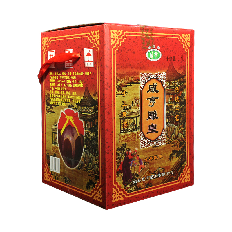 咸亨 雕皇 十年陈酿 半甜型 绍兴黄酒 2.5L 礼盒装价格:128.00元!