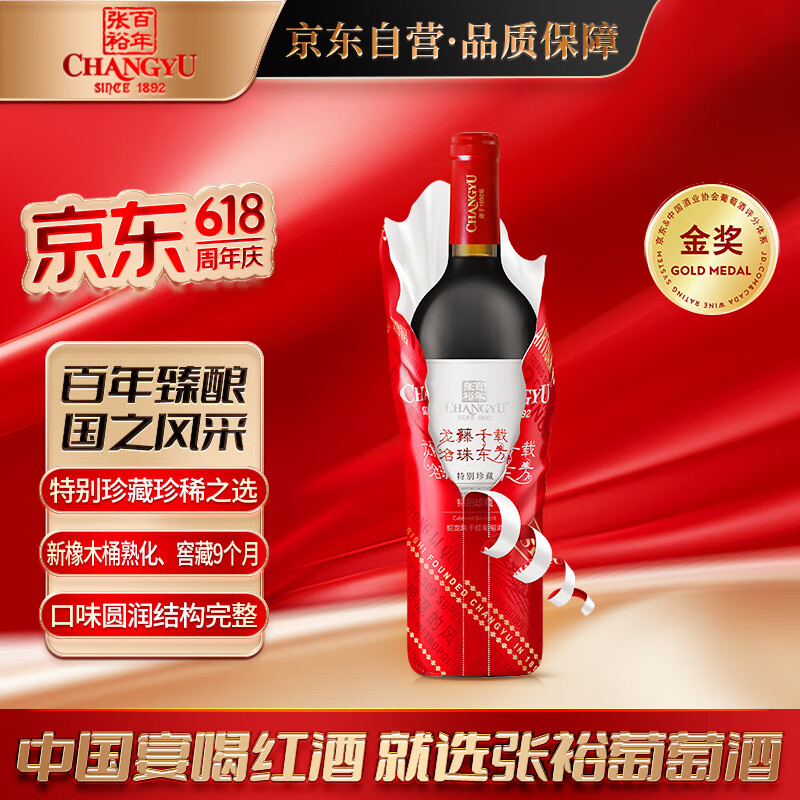 张裕 龙藤名珠 特别珍藏解百纳蛇龙珠干红葡萄酒 750ml单瓶装国产红酒价格:197.50元!