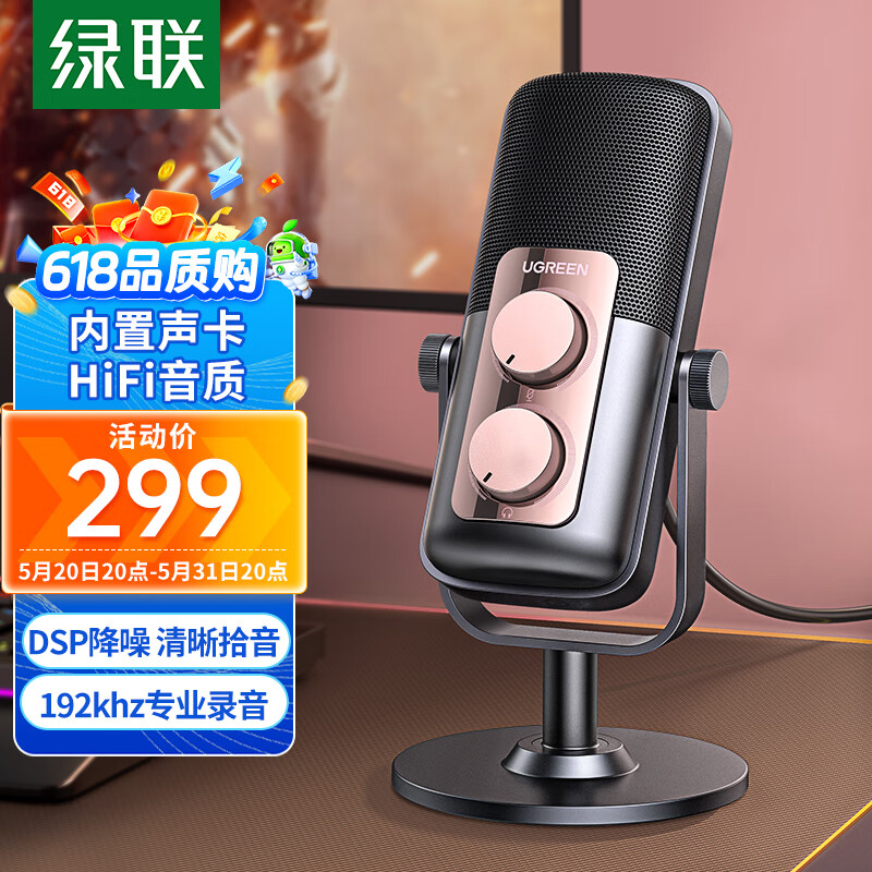 绿联(UGREEN)桌面电脑麦克风 USB口台式电脑话筒家用直播降噪收音器笔记本电容麦网课复试游戏会议语音K歌价格:299.00元!