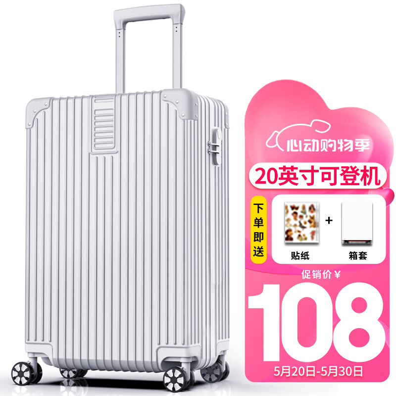 SOO行李箱男学生旅行箱拉杆箱女万向轮 A210密码皮箱子20英寸奢华银价格:108.00元!