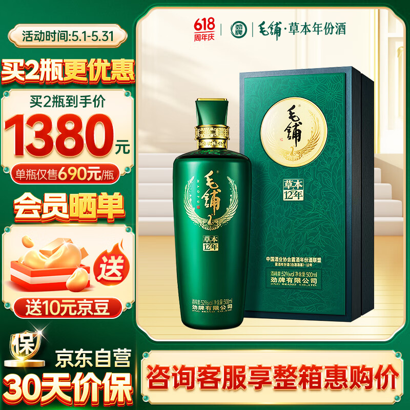 劲牌 毛铺苦荞酒 露酒 草本真年份 高度 12年 52度 500ml价格:759.00元!