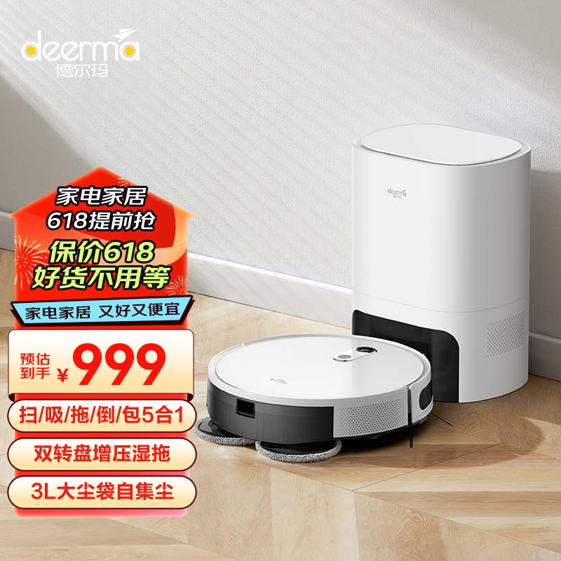 德尔玛(Deerma)A10 扫地机器人自集尘扫拖一体智能家用吸尘器扫地拖地一体机 扫拖价格:1499.00元!