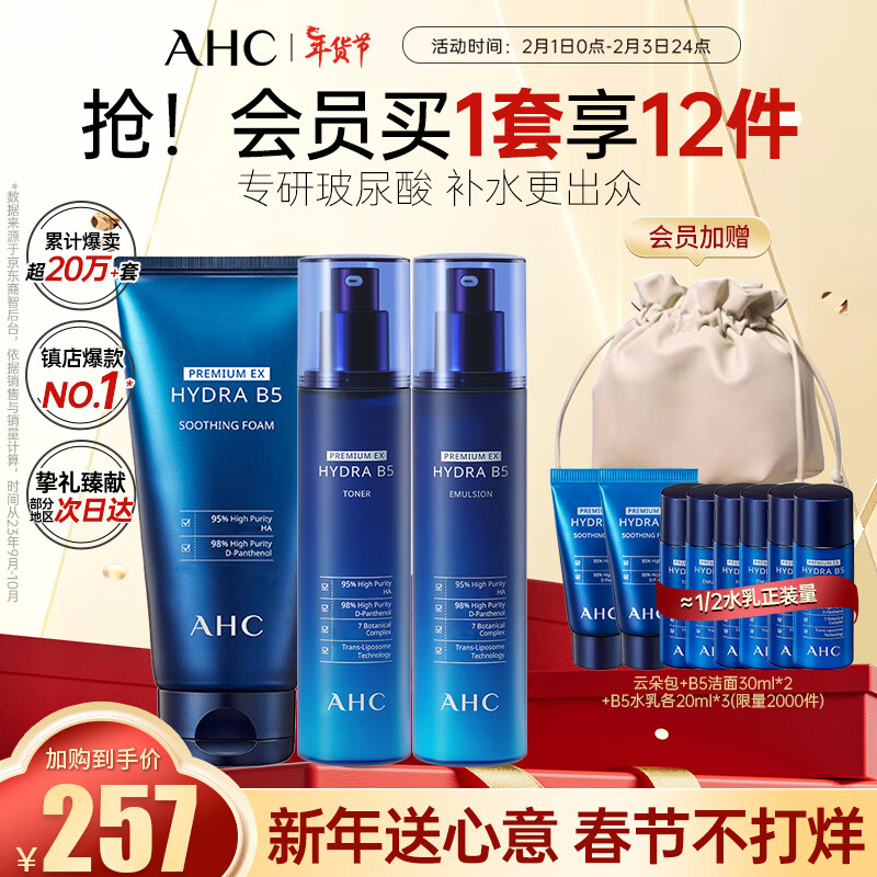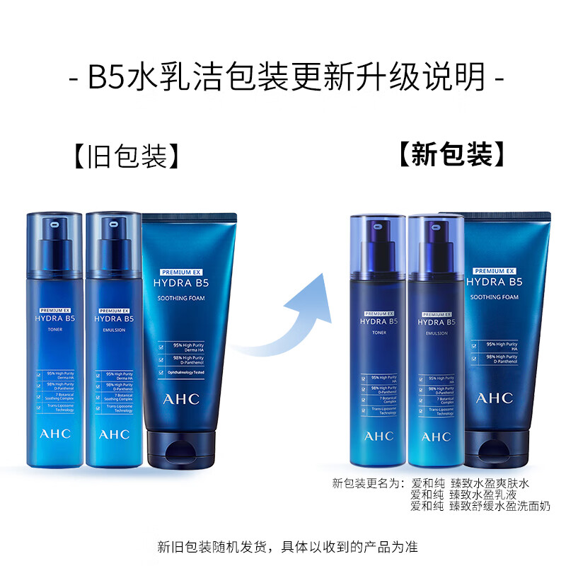 AHC臻致水盈B5水乳洁面玻尿酸护肤套装(水+乳+洗面奶)保湿新年礼物价格:257.00元!