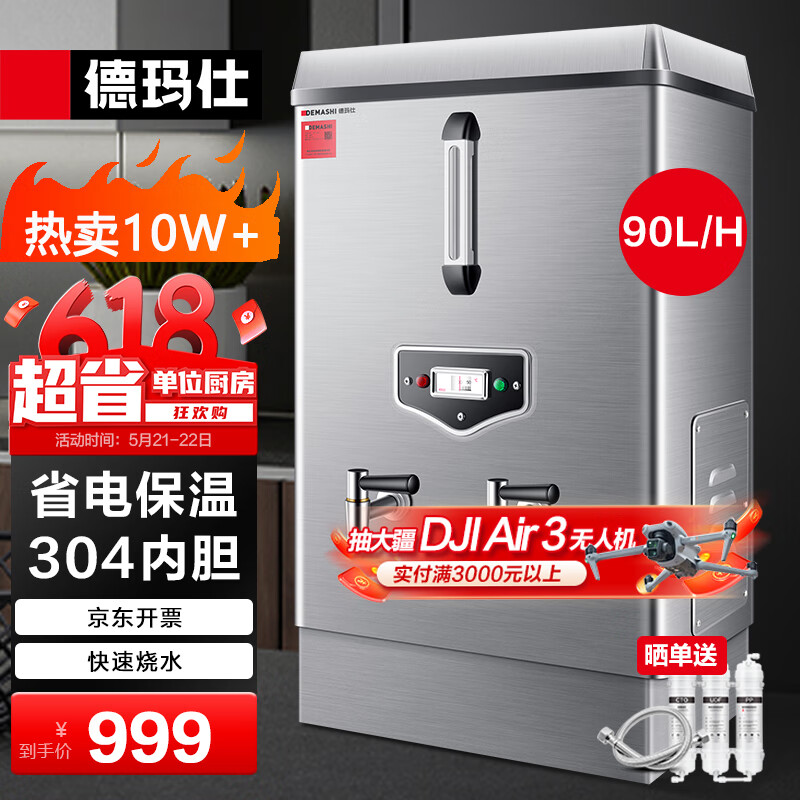 德玛仕(DEMASHI)开水器商用 电热开水机 全自动进水 304不锈钢 烧水器商用 KS-90F(发泡款)380V价格:1099.00元!
