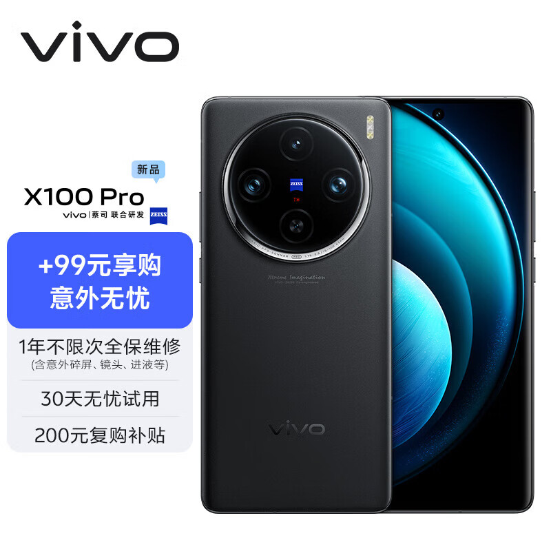 vivo X100 Pro 16GB+1TB 辰夜黑【意外无忧套装】蔡司APO超级长焦 蓝晶×天玑9300 5400mAh蓝海电池 手机价格:6098.00元!