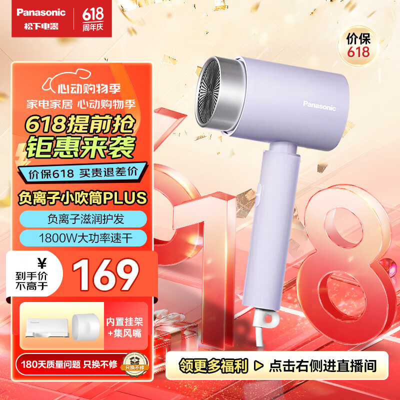 松下(Panasonic)电吹风机大功率大风力速干负离子家用吹发宿舍电吹风筒EH-WNE5K 紫色风嘴加防尘袋价格:169.00元!