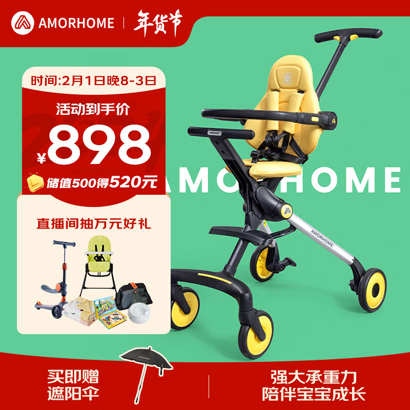 AMORHOME遛娃神器婴儿推车可坐轻便折叠宝宝溜娃 蜜瓜黄全包款价格:1099.00元!
