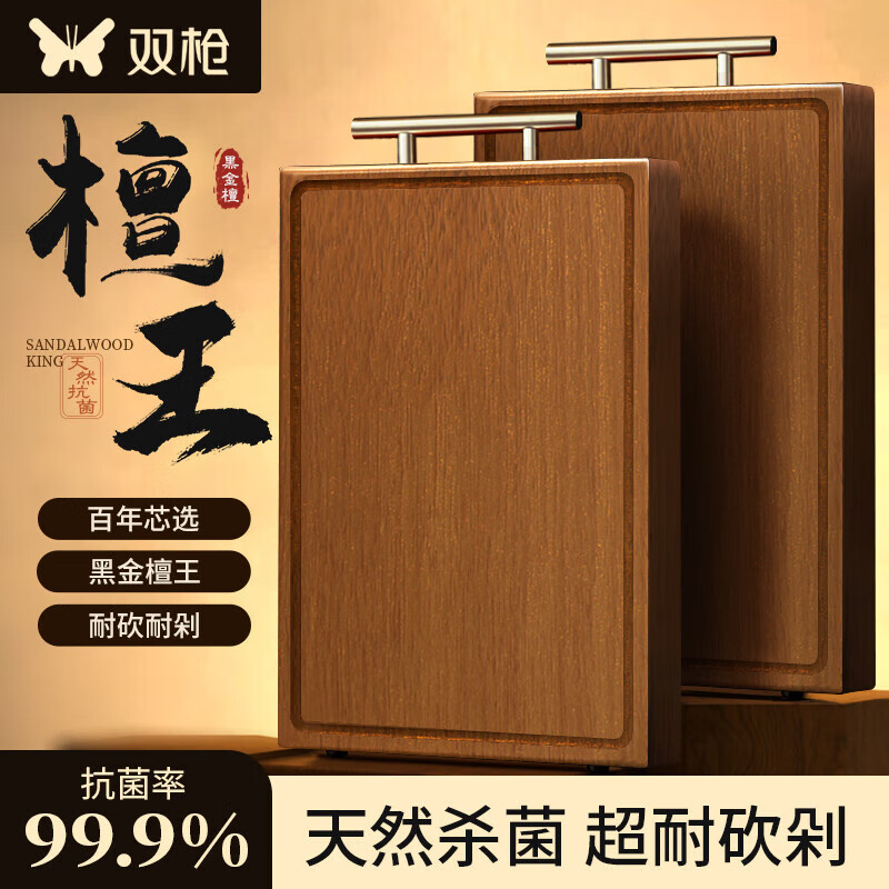 双枪抗菌黑金檀整木菜板 防霉砧板加大加厚切菜板剁骨案板面板菜墩价格:112.00元!
