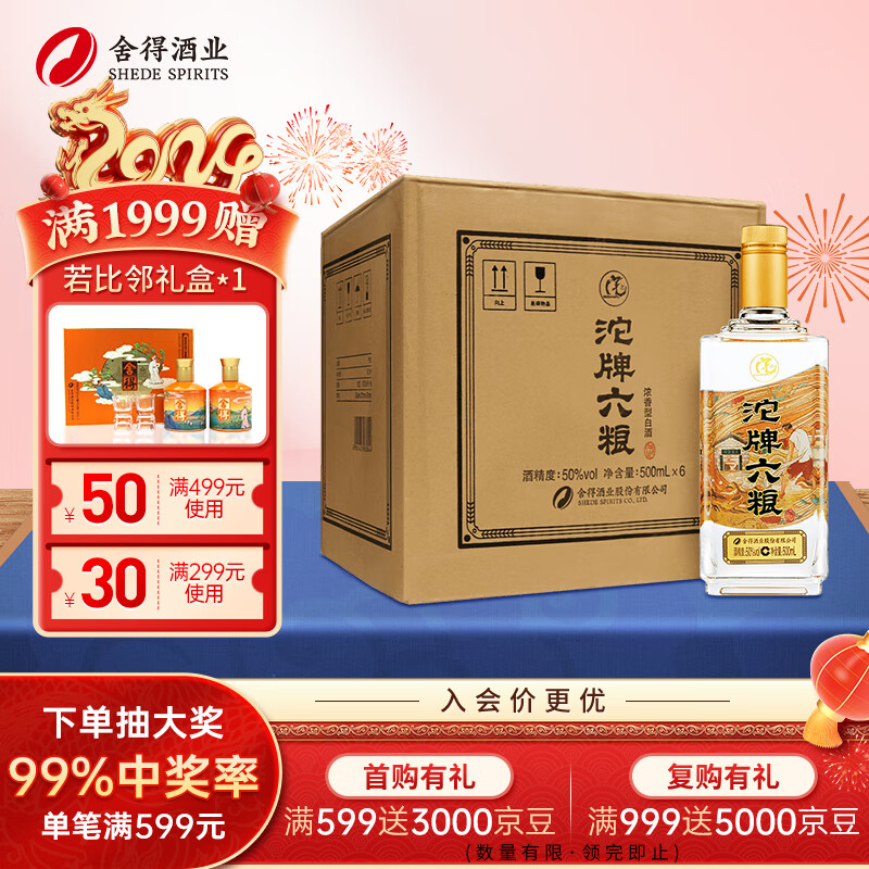 沱牌 舍得 六粮 浓香型白酒 50度 500ml*6瓶 整箱装【年货送礼】价格:348.00元!