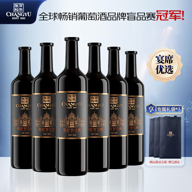 张裕 第九代特选级解百纳蛇龙珠葡萄酒750ml*6瓶整箱装国产红酒价格:618.00元!