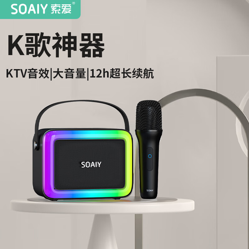 索爱(soaiy)麦克风音响一体带话筒k歌家庭KTV自带声卡蓝牙音箱神器无线唱歌家用卡拉ok SK10单麦版暗夜黑价格:236.50元!