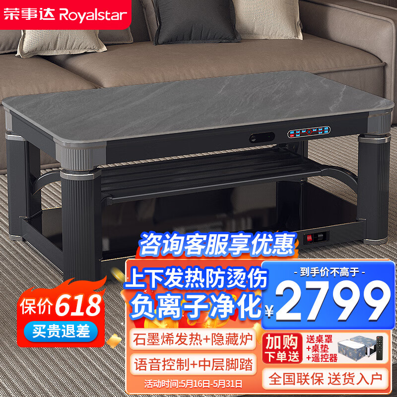 荣事达电暖桌1.6米石墨烯发热烤火茶几带语音控制升降取暖器家用电暖炉取暖桌长方形餐桌烤火桌RC-C13价格:3199.00元!