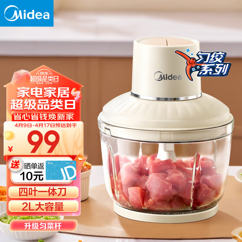 美的(Midea) 绞肉机家用绞馅机碎肉机打肉机饺子肉馅电动多功能料理机搅拌机切菜婴儿辅食机 【匀绞系列】JC22 2L价格:199.00元!
