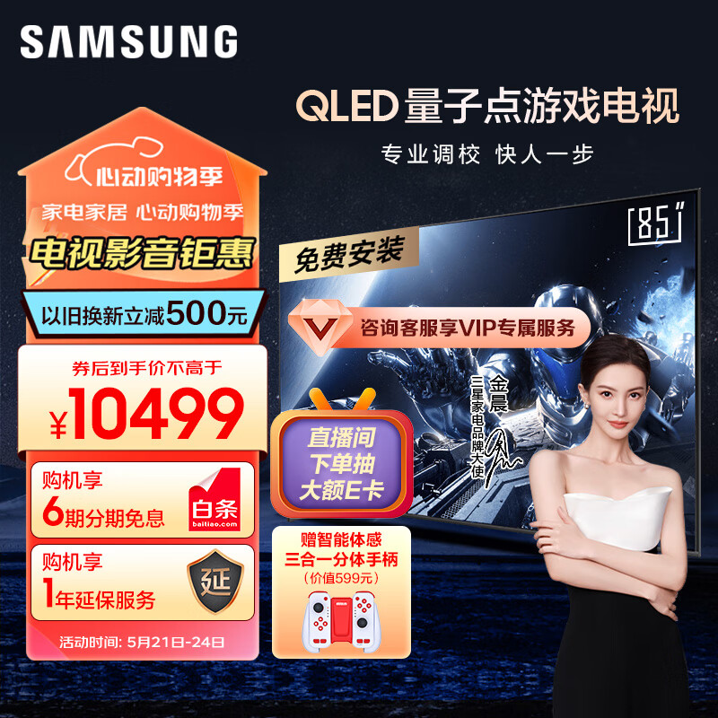 三星(SAMSUNG)85QX3C 85英寸 QLED量子点 专业游戏电视 无开机广告 超薄4K 120Hz HDMI2.1 QA85QX3CAJXXZ价格:10899.00元!