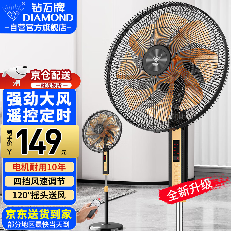 钻石牌(DIAMOND)电风扇家用落地扇办公室立式风扇客厅大风量定时遥控机械摇头风扇 14吋八叶【遥控款】FS-35Y-1价格:179.00元!