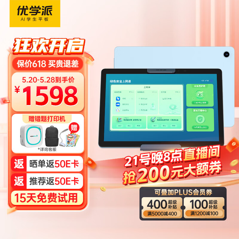 优学派学习机E16(128G)10.1英寸 护眼学生平板电脑 智能语音问答家教机小学初中高中辅导英语点读机 价格:1598.00元!