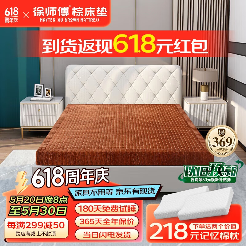 徐师傅全山棕床垫硬棕垫手工线缝单双人榻榻米床垫定制1.5*2米价格:4735.00元!