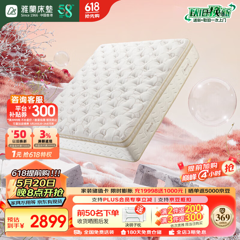 雅兰2CM乳胶床垫天丝?面料软硬双面独袋弹簧床垫 大小姐 1.8米*2米价格:5599.00元!