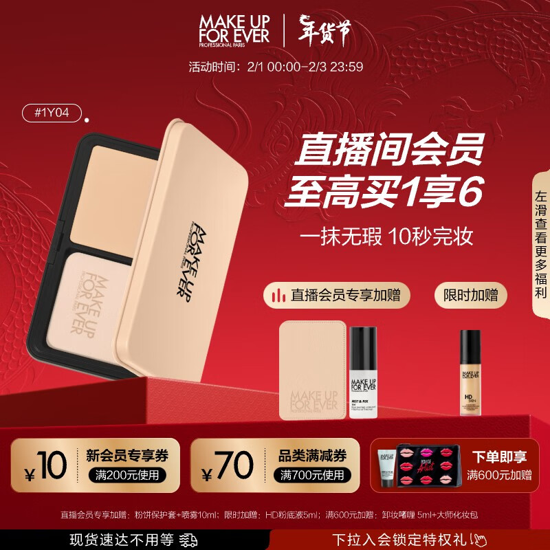 玫珂菲(MAKE UP FOR EVER)仿真肌丝绒粉饼定妆1Y04遮瑕控油固体粉底情人节礼物送女友价格:460.00元!