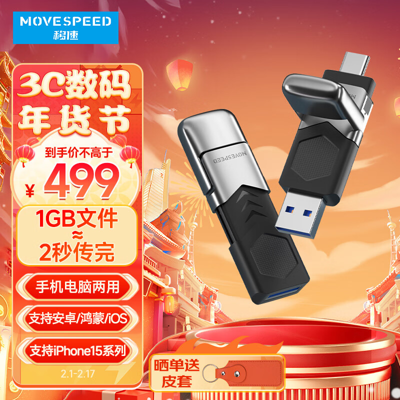 移速(MOVE SPEED)1TB USB3.2/Type-c双接口 固态U盘 奇V 读速550M/s 苹果15系列 安卓手机&鸿蒙 车载U盘价格:559.00元!