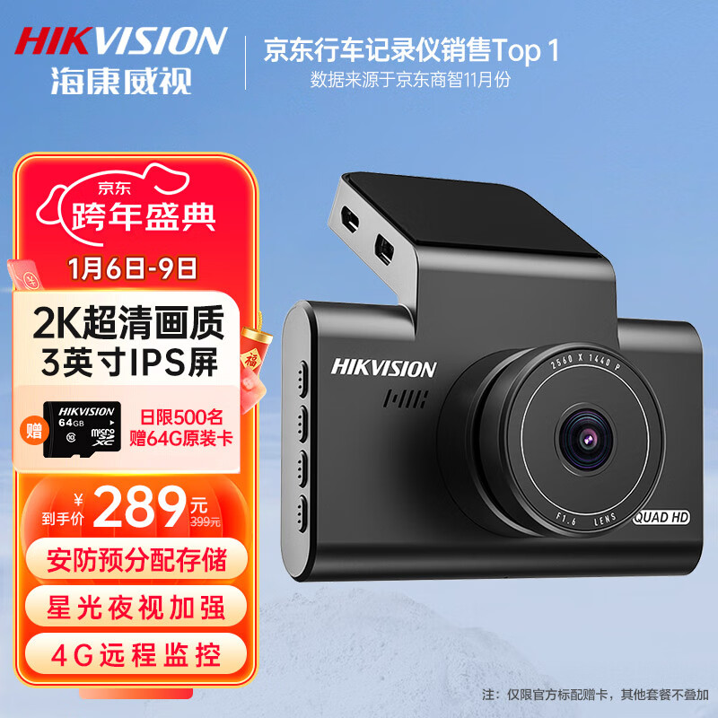 HIKVISION 海康威视行车记录仪C6LITE 2K高清星光夜视 语音声控远程查看价格:319.00元!