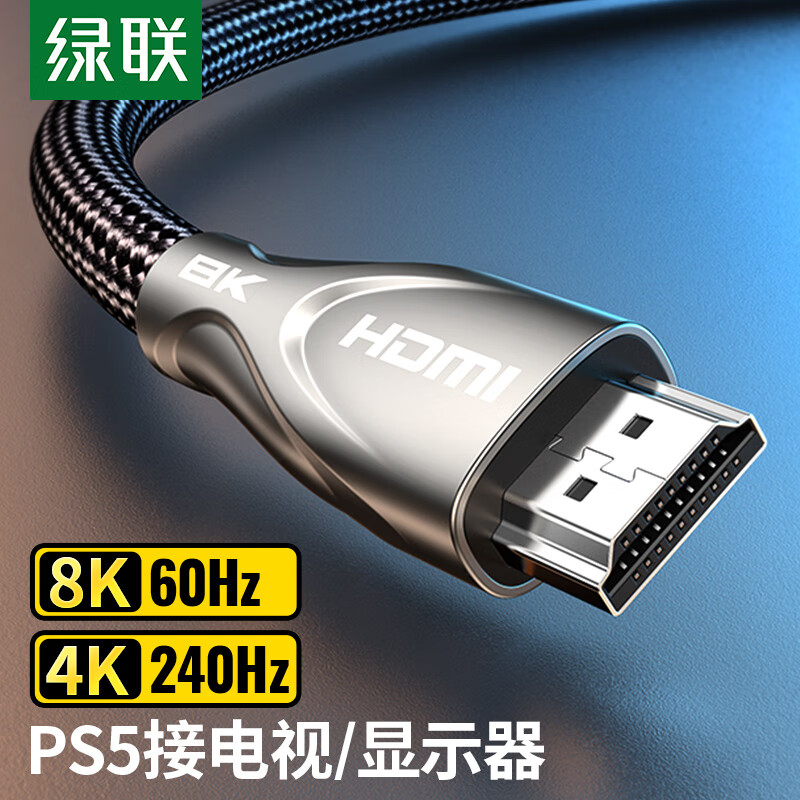 绿联HDMI线2.1版8K60Hz 4K240Hz兼容HDMI2.0 高清视频连接线笔记本电脑机顶盒接电视显示器投影仪3米价格:139.00元!