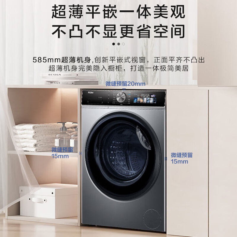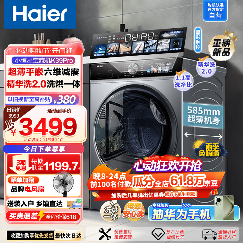海尔(Haier)10公斤滚筒全自动大容量家用洗烘一体洗衣机K39Pro小恒星精华洗2.0六维减震超薄平嵌12519以旧换新价格:3499.00元!
