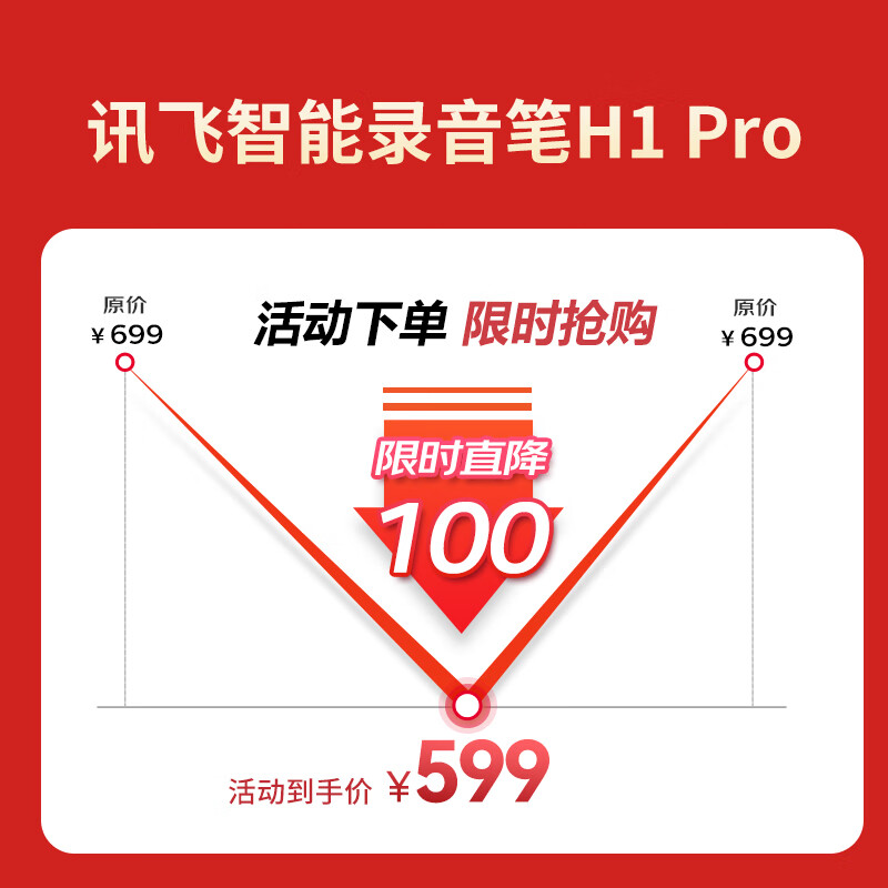 科大讯飞智能录音笔H1 Pro 免费录音转文字 智能降噪实时翻译录音神器 随身小巧便携专业录音设备录音机价格:599.00元!