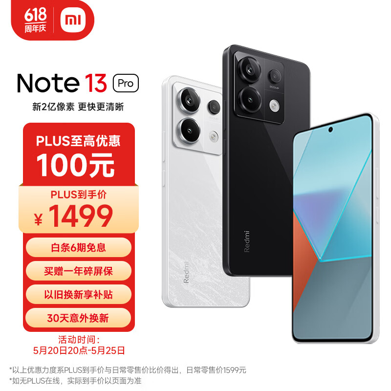小米Redmi Note13Pro 新2亿像素 第二代1.5K高光屏 12GB+256GB 子夜黑 SU7 5G手机价格:1599.00元!