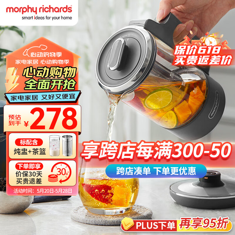 摩飞电器(Morphyrichards)养生壶 分体便携式迷你煮茶器 烧水壶 小型办公室家用 多功能煮茶壶分体式热水壶0.6L MR6085 灰价格:328.00元!