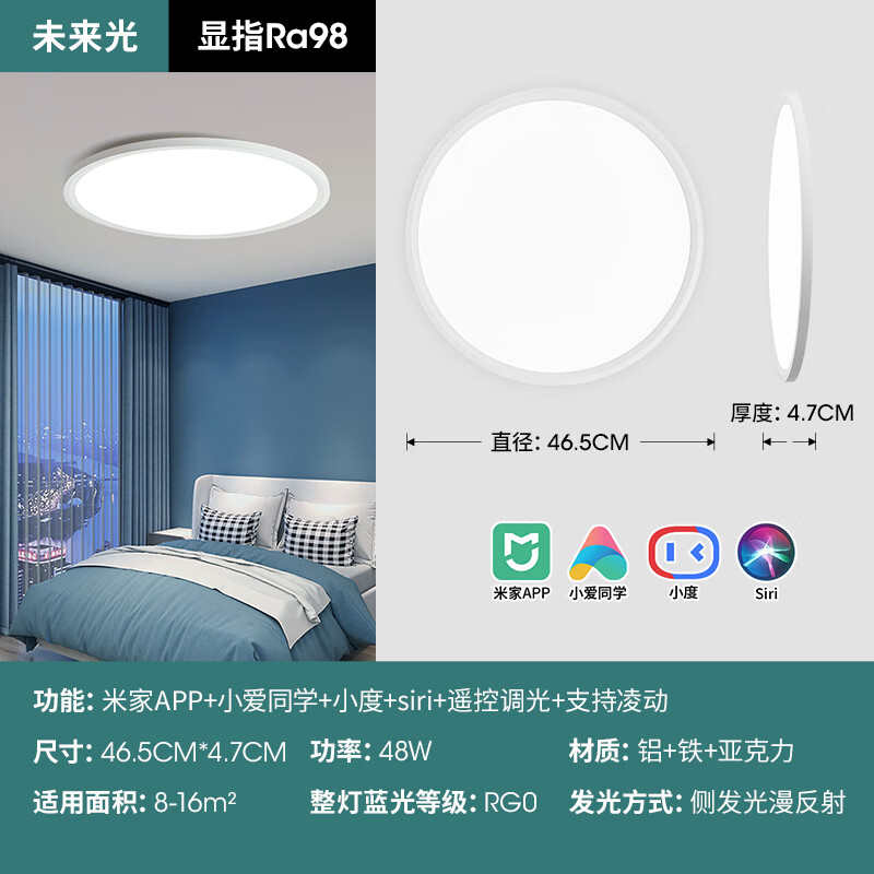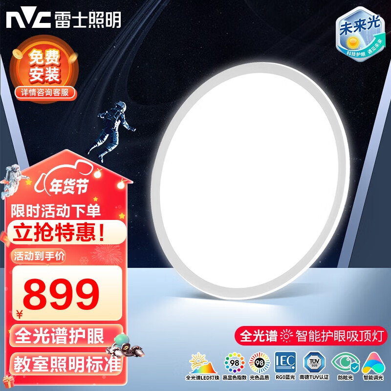 雷士(NVC)LED吸顶灯简约卧室书房儿童房高显色智能全光谱健康护眼灯 未来光价格:899.00元!