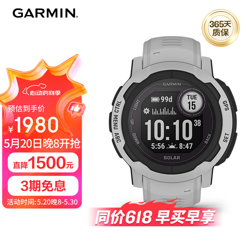 佳明(GARMIN)本能2户外探险GPS北斗多星定位智能手表太阳能运动版晨雾灰价格:1980.00元!