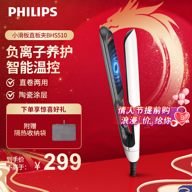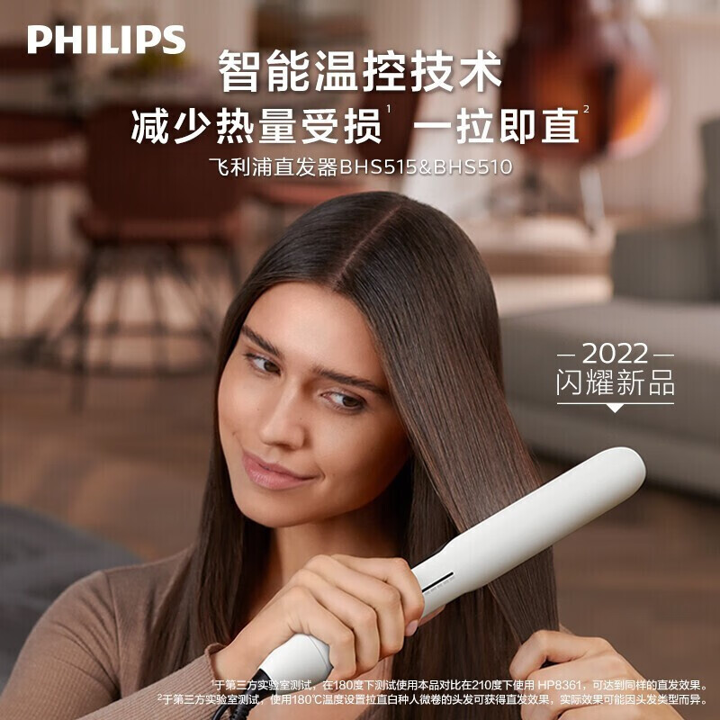 飞利浦(PHILIPS)电卷发棒 直板夹 智能温控 卷直两用 小滑板 生日/新年礼物送女友送礼优选 BHS515白色 直径 25mm价格:499.00元!