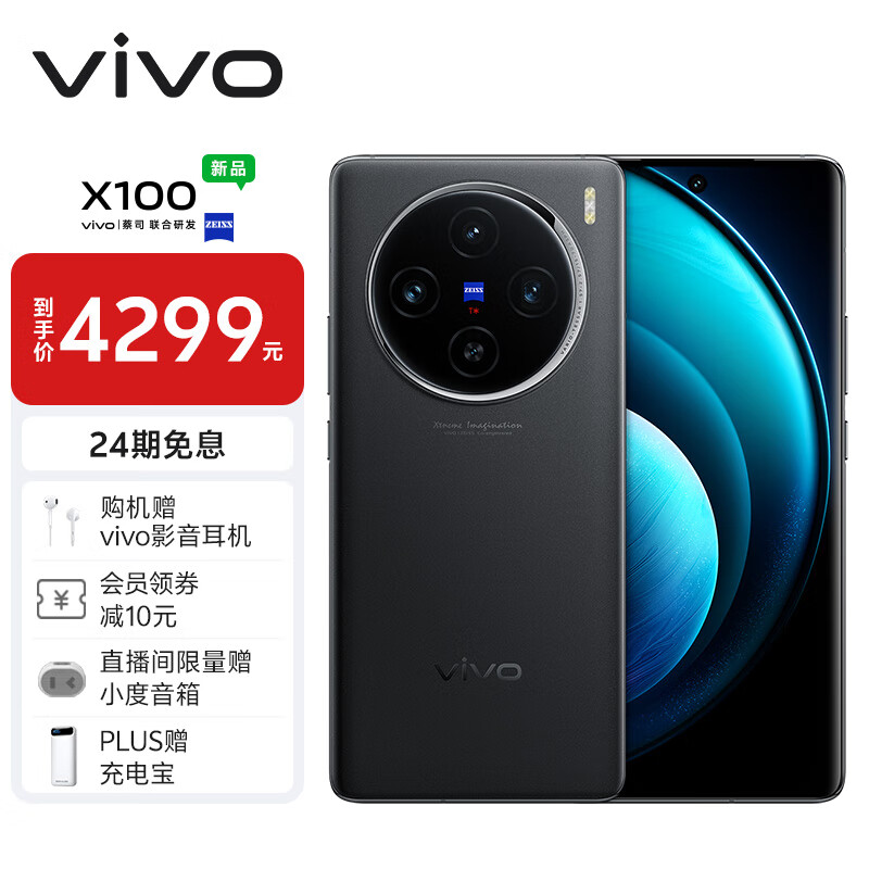 vivo X100 16GB+256GB 辰夜黑 蓝晶×天玑9300 5000mAh蓝海电池 蔡司超级长焦 120W双芯闪充 拍照 手机价格:4299.00元!