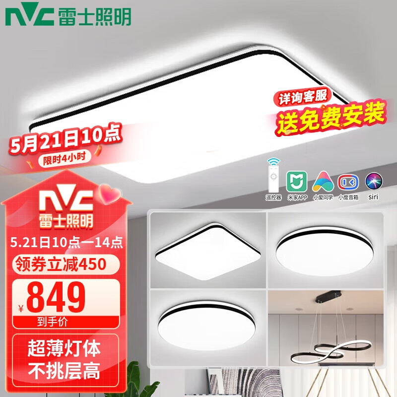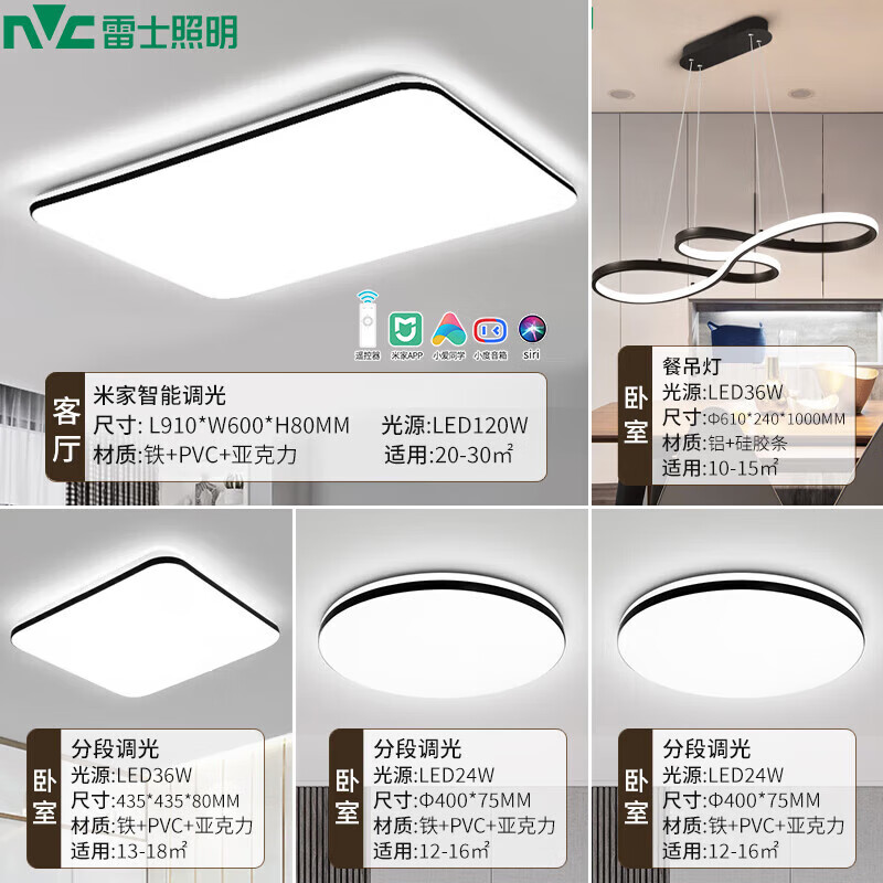 雷士照明(NVC)吸顶灯客厅大灯卧室餐厅灯具全屋套餐三室两厅B主灯智控价格:1299.00元!