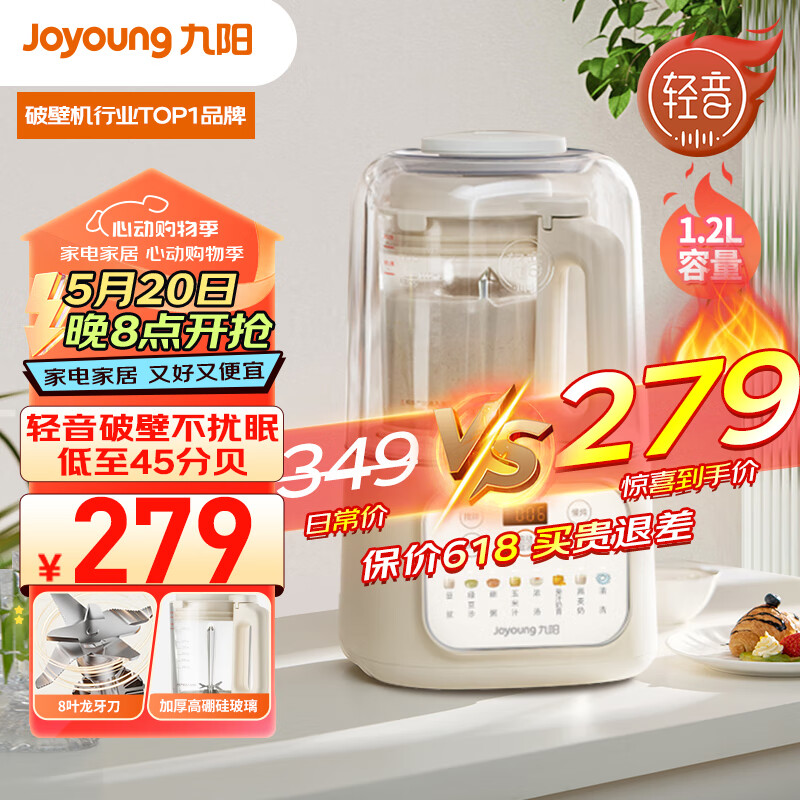 九阳(Joyoung)低音破壁机家用豆浆机 柔音降噪榨汁机料理机 纤薄精巧小容量 破壁机L12-P199价格:279.00元!