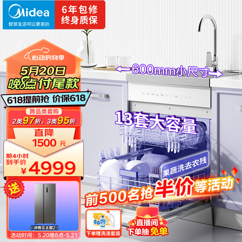美的(Midea)集成水槽洗碗机TX60 一体式 大单槽 白色水槽洗碗机一体 洗碗机带洗菜盆一体机小尺寸价格:5499.00元!