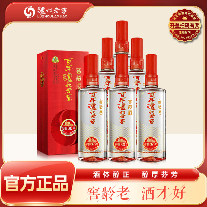 泸州老窖 窖龄30年 浓香型白酒 52度500ml 6瓶 整箱装(内含礼品袋)价格:1394.00元!