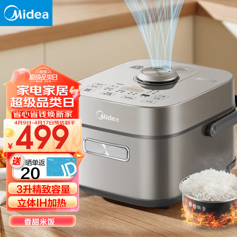 美的(Midea)电饭煲 家用IH加热智能触控家用升级预约多功能电饭锅一级能效 稻香3.0双环焕活IH加热 3L MB-HS353价格:599.00元!
