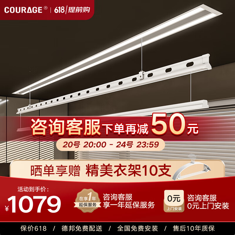 卡瑞琪(COURAGE)电动晾衣架隐形阳台家用隐藏式晾衣架升降薄晒衣架 米家2.7+被杆价格:2229.00元!