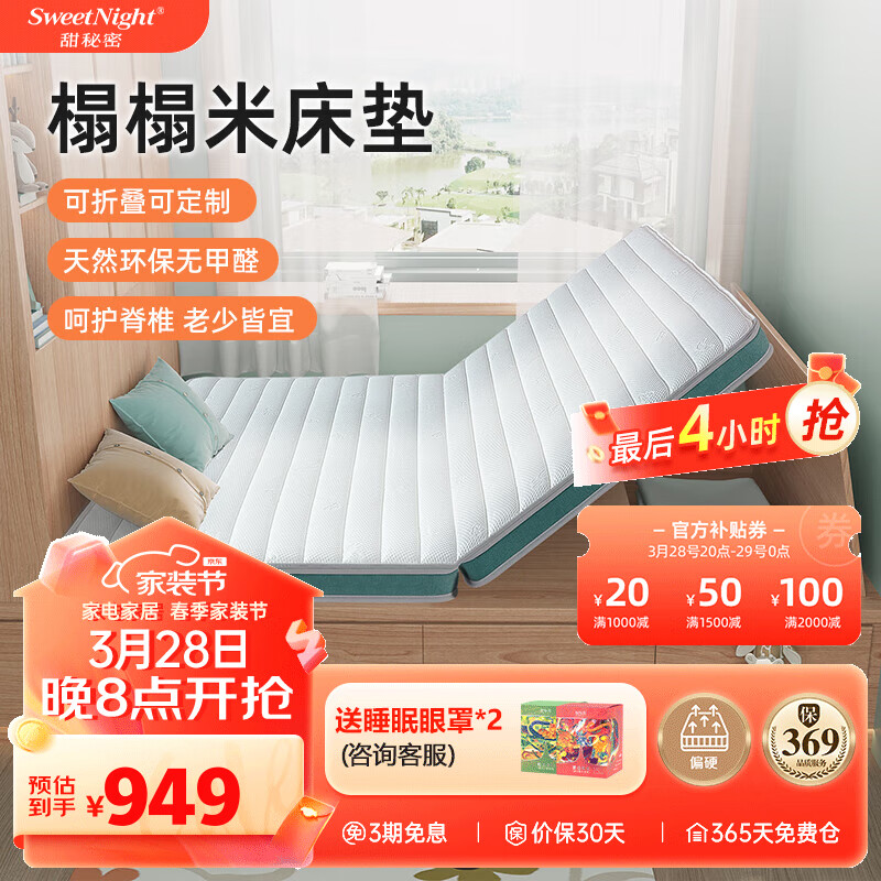 Sweetnight榻榻米床垫天然椰棕床垫折叠8cm床垫子 可定制甜秘密丹左1.2x2米价格:949.00元!