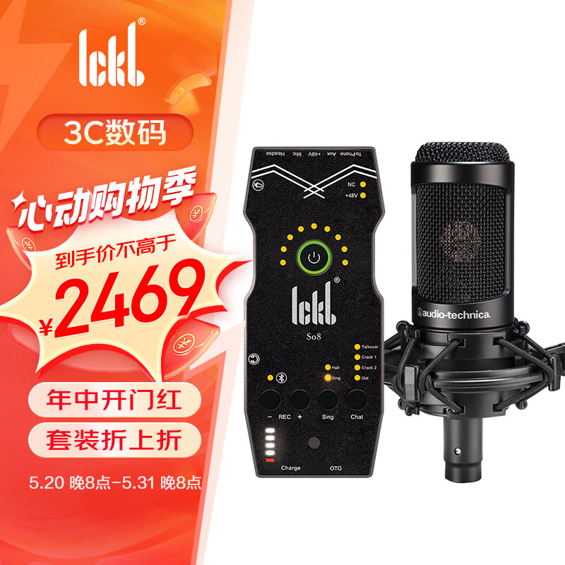 Ickb so8五代声卡+铁三角AT2035麦克风套装手机直播电脑主播唱歌k歌录音设备全套电容麦话筒全套设备价格:2599.00元!