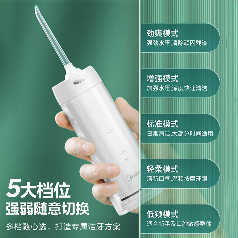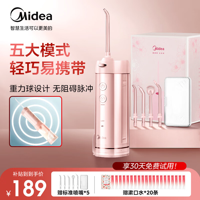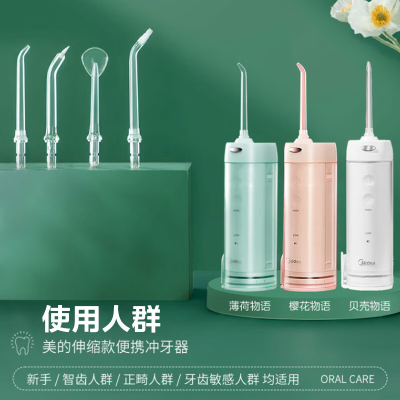 美的冲牙器洗牙神器水牙线预防牙结石清洁口腔牙套党适用伸缩便携年货节生日礼物女生男生 樱花粉BL0103-5模式 5支喷头价格:219.00元!