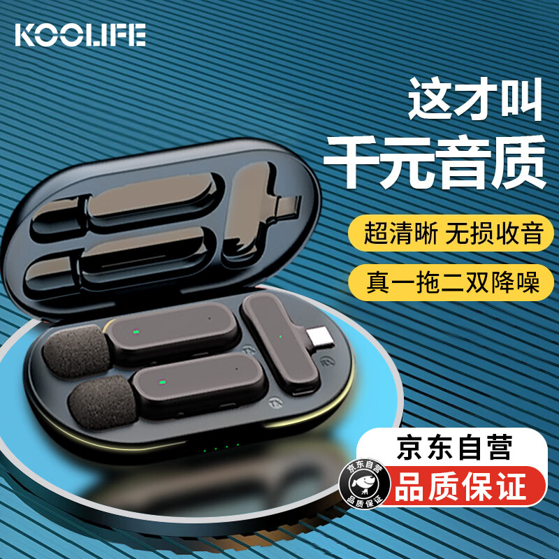 KOOLIFE 无线麦克风领夹式直播胸麦一拖二收音器小蜜蜂声卡手机蓝牙话筒主播抖音录制拍摄短视频户外设备价格:199.00元!