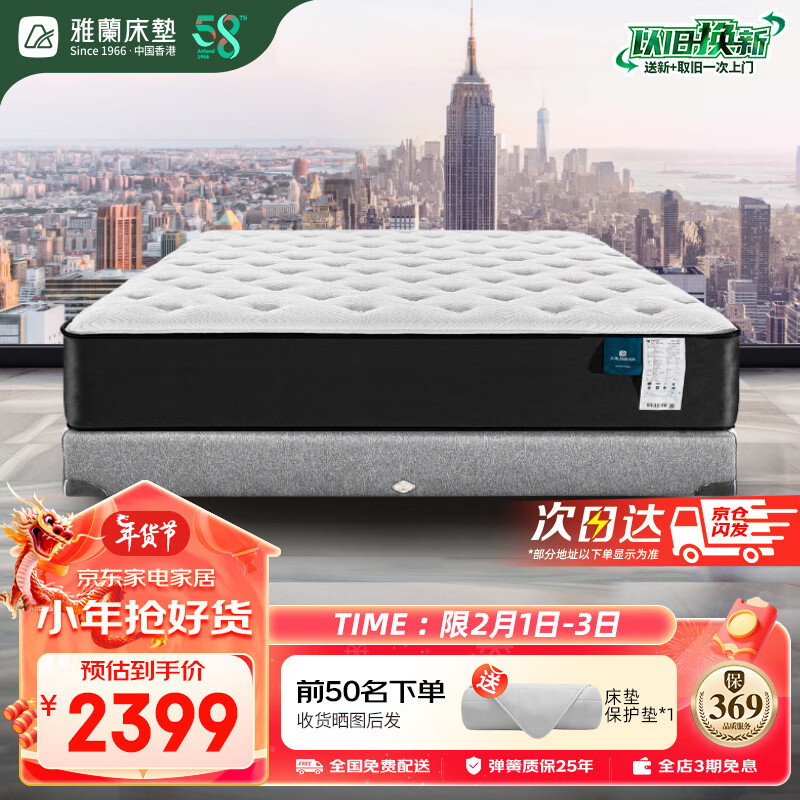 雅兰50周年纪念款 软硬适中独袋弹簧乳胶床垫 蘭朋友舒适2.0 1.8*2米价格:2899.00元!