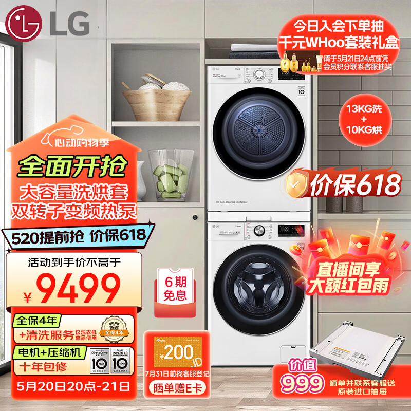 LG 容慧系列洗烘套装13kg蒸汽洗+10kg变频热泵烘 除菌除螨FCV13G4W+RH10V3AV6W(附件商品仅展示)价格:11199.00元!