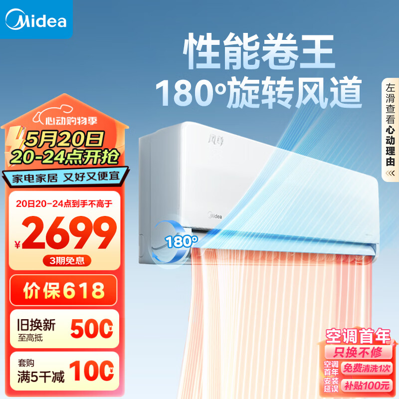 美的(Midea)大1匹 风尊 时尚版 新一级能效 变频冷暖 独立除湿 壁挂式空调挂机 智能家电 KFR-26GW/N8MXC1价格:2699.00元!